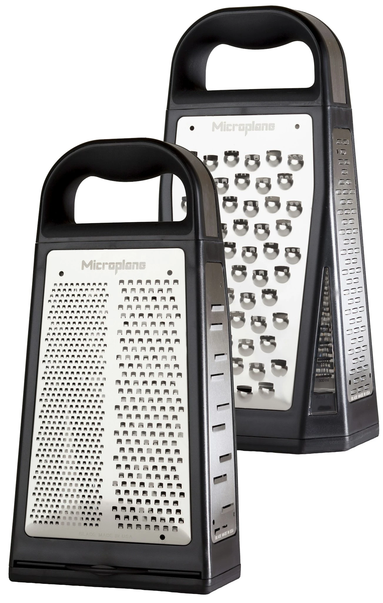 Die Microplane Elite Turmreibe lässt keine Wünsche offen! Fünf verschiedene messerscharfe, photo-geätzte Klingen -made in USA -im klassischen vierseitigen Design, ermöglichen Ihnen vielfältige, präzise Reibergebnisse. Mit der feinen, groben, 2-Wege-Schneide, großen Raspel und XL-groben Klingenausführung können Sie Zitrusfrüchte zesten und Ingwer, harten und weichen Käse, Knoblauch, Zwiebeln, Kokosnüsse, Schokolade, Äpfel, Kartoffeln, Kohl, Möhren, Gurken, Zucchini, Gewürze uvm. von fein bis sehr grob schneiden. Ihrer Phantasie sind keine Grenzen gesetzt, es kommt auf das gewünschte Reibergebnis an. Das Reibgut können Sie durch einen herausnehmbaren Schieber im Turminneren sammeln . Zwei Sichtfenster mit Markierungen (bis zu 600 ml) an den unteren Seiten helfen beim Dosieren. Mit der rasiermesserscharfen Microplane-Qualität werden die Lebensmittel geschnitten und nicht zerrissen , dadurch können sich die Aromen entfalten. Genuss ist garantiert! Maße des Produktes: 27,0 cm x 13,9 cm x 9,5 cm