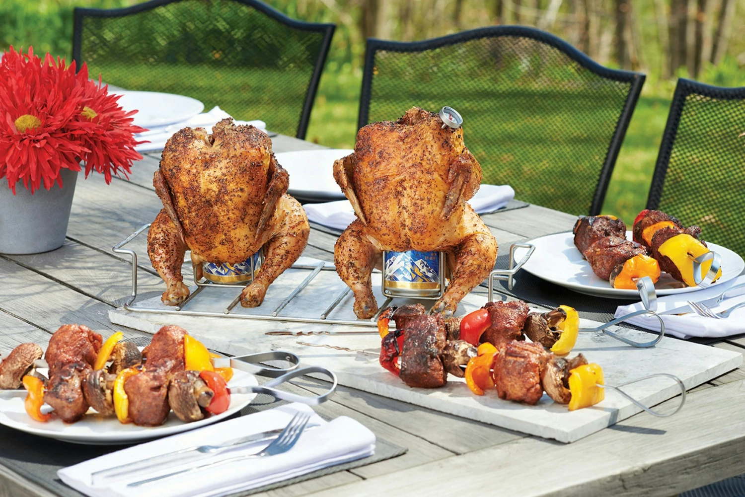 Das NAPOLEON Starter-Set für Fleisch-Liebhaber beinhaltet einen Edelstahl Spare-Ribs- und Bratenhalter, einen Edelstahl 2-fach-Bierdosenhähnchen-Halter, sechs Edelstahl Spieße und vier Taschenthermometer. 1x Edelstahl Spare-Ribs- und Bratenhalter 1x Edelstahl 2-fach-Bierdosenhähnchen-Halter 6x Edelstahl Spieße (33,5 cm) 4x Taschenthermometer